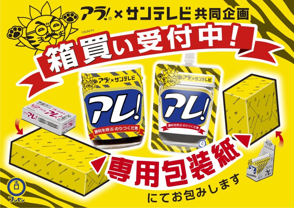 サンテレビとブンセン株式会社は、 「アラ!」の日である 3月31日(一般社団法人日本記念日協会認定)に、初のコラボ商品となる 勝利を呼ぶのりつくだ煮「アレ!」を発売します。
